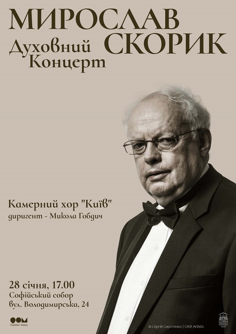 28 січня о 17.00 камерний хор “Київ” виконає в Софійському соборі “Духовний концерт” Мирослава Скорика.