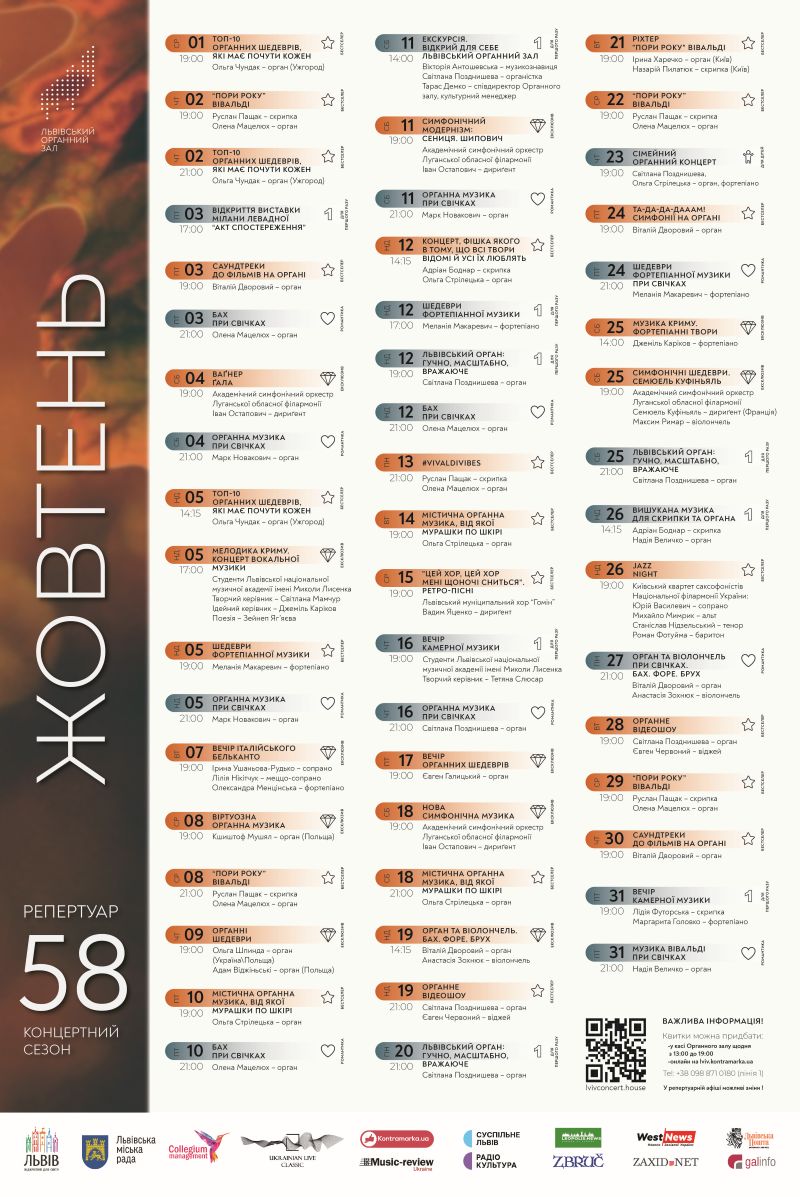 Також у жовтні на вас чекають програми від солістів Львівського органного залу, що вже стали хітами: