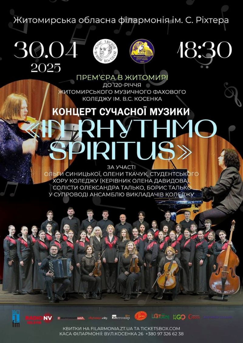 30 квітня у Житомирській обласній філармонії ім. Святослава Ріхтера прозвучить прем’єра — концерт "In Rhythmo Spiritus"