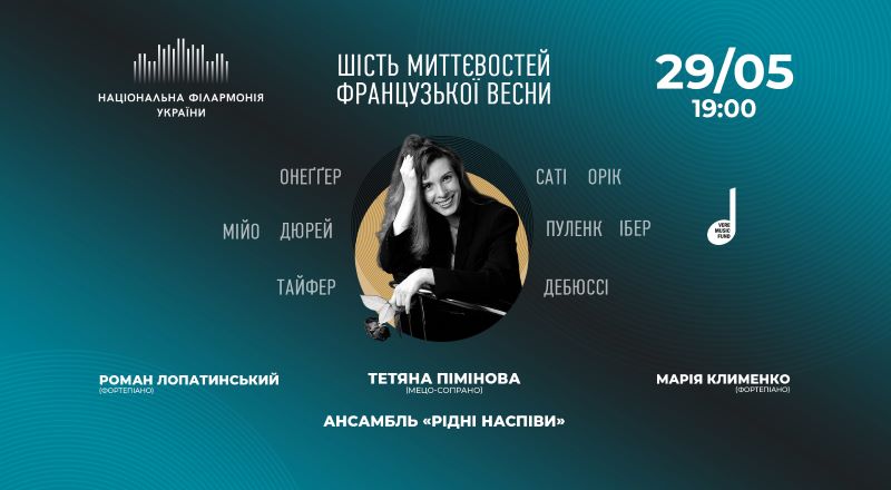 Концерт вокальної музики "Шість миттєвостей весни" за участю Тетяни Пімінової (мецо-сопрано) та Ансамблю «Рідні наспіви» вкотре об’єднає не лише композиторів «Французької шістки», але й їхніх друзів та ворогів.
