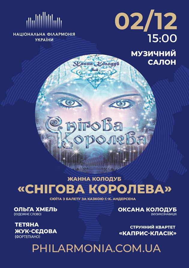 Сюїта з балету за казкою Г.-К. Андерсена «Снігова королева» української сучасної композиторки Жанни Колодуб прозвучить у виконанні Камерного струнного квартету «Каприс-Класік» і піаністки Тетяни Жук-Сєдової.