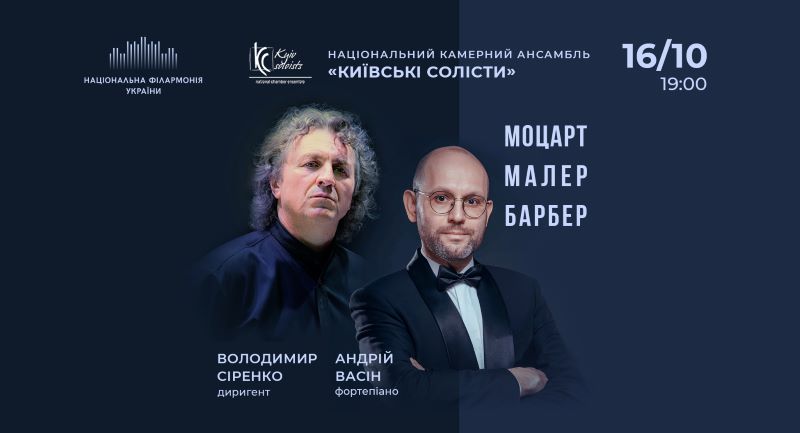 16 жовтня у Національній філармонії виступить Національний камерний ансамбль «Київські солісти», диригент Володимир Сіренко, Андрій Васін, фортепіано.