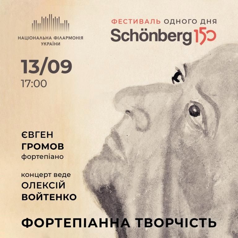 Тож, 13.09 о 17:00 в Музичному салоні НФУ – фортепіанна творчість Шенберґа у виконанні київського піаніста Євгена Громова з модерацією композитора та музикознавця Олексія Войтенка.