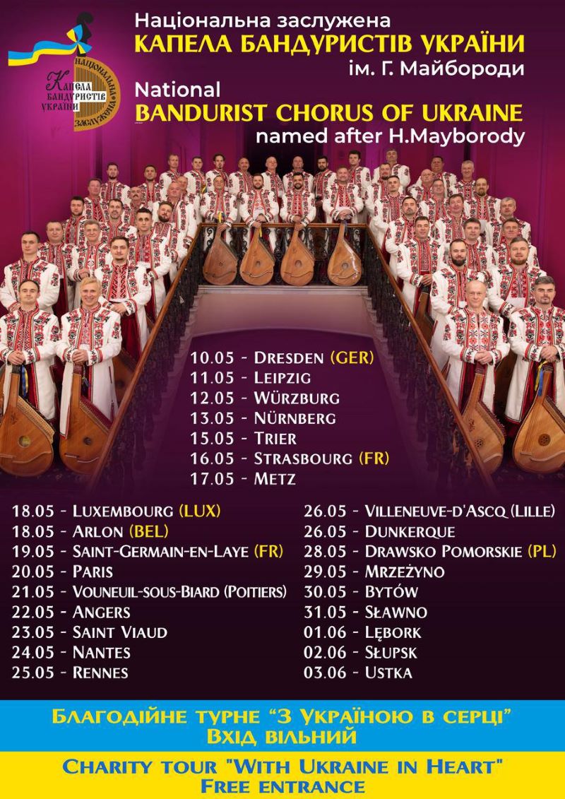 Національна капела бандуристів відвідає Німеччину, Францію, Люксембург, Бельгію та Польщу, де відіграє 25 концертів.