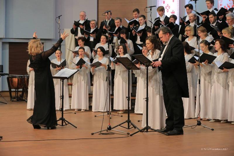 Та домінантою концертної програми став високохудожній спів легендарного хорового колективу Українського радіо під керуванням Юлії Ткач. В інтерпретації хору були представлені шедеври української хорової класики, зокрема: Станіслав Людкевич «Сонце заходить», Богдан Вахнянин «Садок вишневий коло хати», солістка – Тетяна Коробка, Федір Гладкий «Думи мої», соліст –Леонід Завірюхін. Велика кількість творів з концертної програми належить саме сучасним українським композиторам. Так, у виконанні Хору звучали твори: Євгена Станковича «Все упованіє моє» (Страсті за Тарасом), Лесі Дичко частини з хорової симфонії «Шевченківна», солісти – Леонід Завірюхін та Олена Пойлішер, Юрія Алжнєва «Тече вода з під явора» (Диптих «Ще треті півні…») та інші. Виконання цих надскладних творів глибоко вразило слухачів в залі.