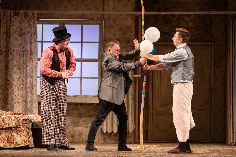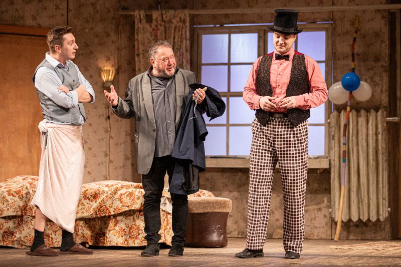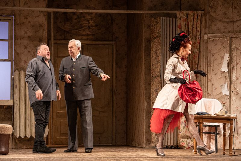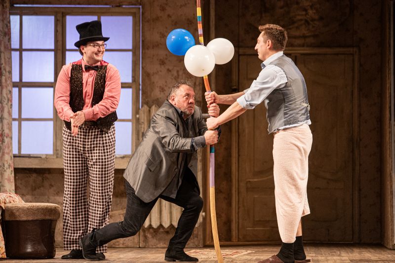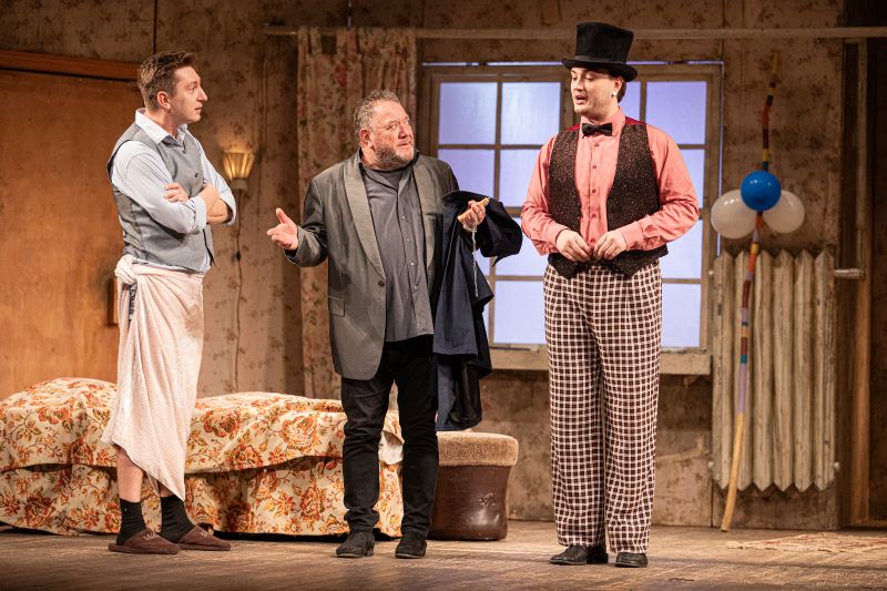 - Для мене інтереси глядача - понд усе,- каже Анатолій ХОСТІКОЄВ. - Я знав, що публіці комедія сподобається. Ми певний час не грали цю виставу... Зараз до постановки залучені інші молоді актори. А головне тут прекрасно грають майстри сцени - Богдан Бенюк, Наталія Сумська і Василь Мазур. Я вважаю, що пори війну, все ж у театрі повинні йти комедії, аби люди трохи розважилися.