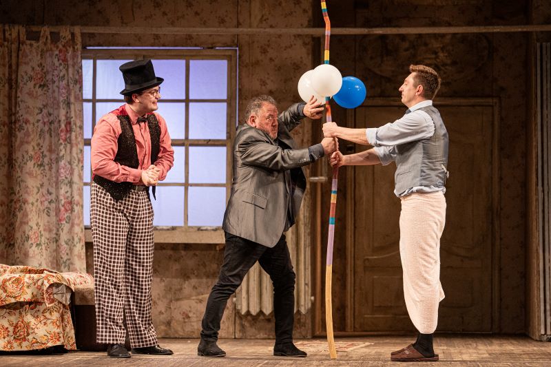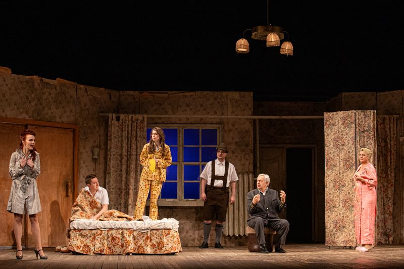Це мелодії моєї молодості й вони додають шарму та ліричності постановці. За сюжетом я придумав, що йде фестиваль, а тому впродовж всього дійства лунають різні мелодії. Музика звучить з вікна готельного номера... а у фіналі герої виконують запальний танець “лісорубів” - цей фрагмент народився, як спогад про найбільший пивний фестиваль у світі, який відбувається у Мюнхені - “Октоберфест” і який мене дуже вразив років п’ятнадцять тому коли я побував у Німеччині.