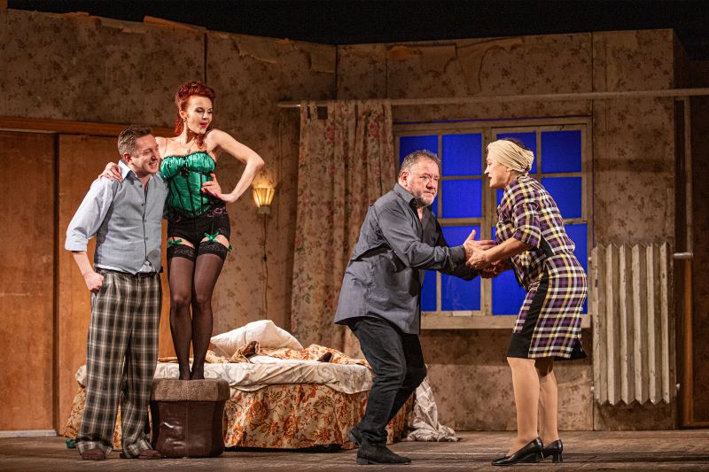 У п’єсі Фрімена головні герої - дві молоді пари, а у мене два подружжя різні за віком. Досвідчене подружжя грають Богдан Бенюк і Наталія Сумська, а молоду пару - Денис Мартинов і Анастасія Рула. Тому вистава має зовсім інший відтінок стосунків, а кожний номер, як бенефіс - Сумської і Бенюка. Актори, немов “купаються” у своїх ролях, а публіка регоче...