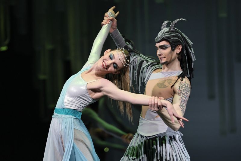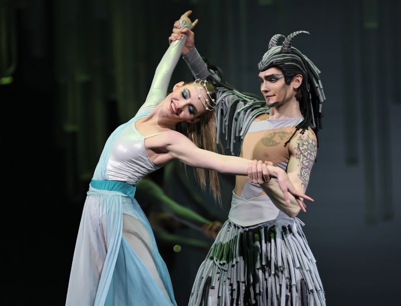 Хореографія навпаки – дуже багата, мальовнича (балетмейстер-постановник Артем Шошин, асистент – Тетяна Куруоглу). Вона синтезує академічну традицію з вільним танцем Марі Вігман, реконструкціями античного танцювального начала початку ХХ століття, в ній ледь помітні відголоси «Весни священної» М. Фокіна, «Після полудня Фавна» Вацлава Ніжинського, «Аполона Мусагета» Дж. Баланчіна, а також акценти далекосхідних ритуальних пластичних дійств. В ній дуже багато від засад сецесії – оспівування ідеалу краси, чуттєвості і природності. Досконало втілені не лише прекрасні, технічно складні, рельєфні, промовисті партії головних героїв в конкретних сюжетних ситуаціях: кордебалет перестав бути тлом, він втілює стихію ідеальної краси, свободи і любові. І у цій функції він виявив себе бездоганно.