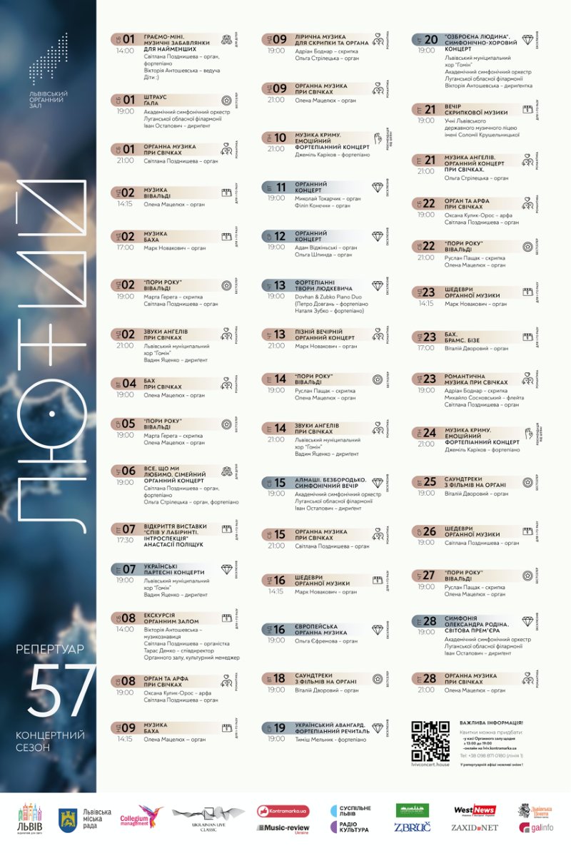 У лютому 2025 року у Львівському органному залі заплановано 42 події