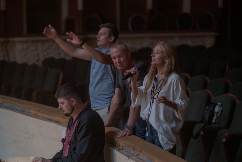 Дуже складною роботою стала музична драматургія вистави, яку ми робили спільно з Андрієм Семеляком, керівником оркестру, (композитори - Кирило Бородін та Марія Хмельова) та Олегом Пилипом, головним хормейстером. До речі, над створенням музичної партитури ми працювали два роки, яка писалася “під ногу”, “під руку”, під сюжет вистави. Коли вже з готовими нотами я прийшла до керівництва Хору ім. Г. Верьовки, то виявилося, що це лише частина роботи... а ще потрібно зробити аранжування. Партитуру адаптував Тимофій Старєнков. Вийшло велике, багатошарове музичне полотно..