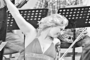 Вражаючим був вихід кучерявої білявки-альтистки в червоній сукні з відкритим декольте.