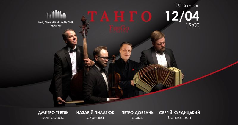 У виконанні FueGo Orchestra прозвучать найрізноманітніші композиції: популярні танго, створені майже 100 років назад, і менш відомі твори, танго з фільмів («Запах жінки») та танго-обробки популярних пісень. А стихія пристрасного танцю не залишить байдужим нікого.