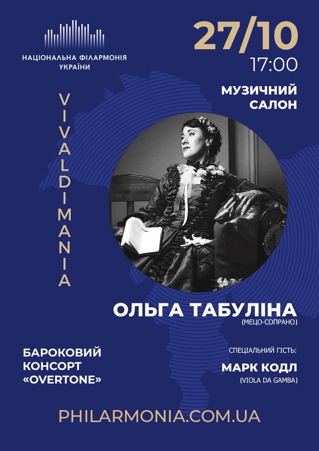 У програмі 27 жовтня прозвучать камерні сольні кантати для альта з continuo та хітові арії з опер найвідомішого композитора доби бароко Антоніо Вівальді, а також соло на автентичній viola da gamba.