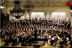 І наостанок, у заключному номері Урочистого гала-концерту, сцена Національної філармонії візуально збільшилася, адже крім оркестру на сцені з’явилися одночасно три хори: муніципальна чоловіча хорова капела ім.Ревуцького, хорова капела „Дзвіночок” Київського Палацу дітей та юнацтва, і, мабуть, найвідоміший дитячо-юнацький колектив Хор хлопчиків і юнаків КССМШ ім.М.В.Лисенка.