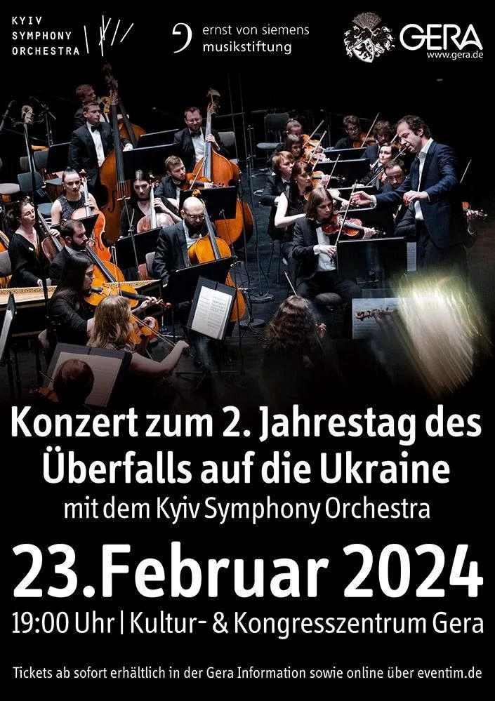 З метою привернення уваги до жахіття, яке чинить у 21-ому столітті росія, Kyiv Symphony Orchestra дає два концерти в Німеччині 23 (Гера) та 24 (Альтенбург) лютого.