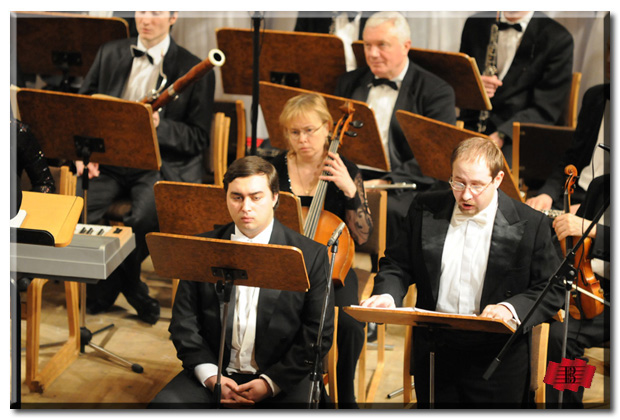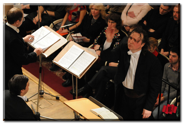 Після привітань ведучої слухачів та подяки «Гете — інституту», за підтримки якого і відбувався концертний захід, були названі імена солістів оркестру та головних діючих осіб — солістів-вокалістів: сопрано – Ольга Фомічова, альт – Марія Ліпінська, тенор — Сергій Бортник, баси Євген Орлов та Андрій Гонюков.