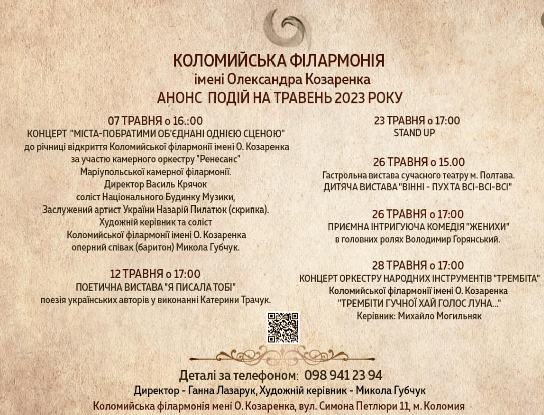 Нагадаємо, попри війну, рік тому почала працювати Коломийська філармонія, яка нещодавно стала носити ім‘я Олександра Козаренка, знаного композитора, піаніста, музикознавця.