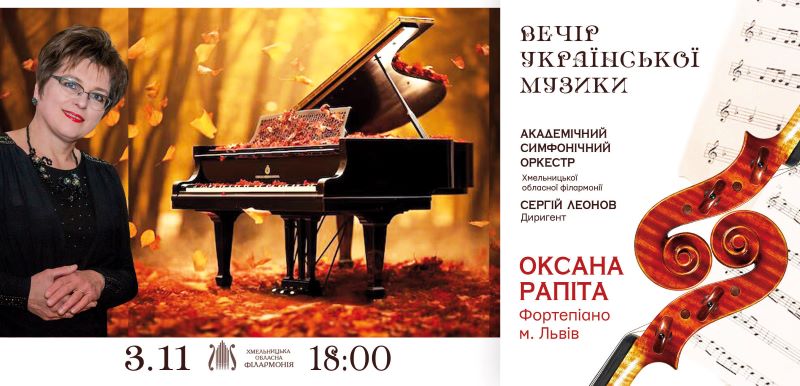 Окрім цікавої програми за участю Академічного симфонічного оркестру філармонії під керівництвом заслуженого діяча мистецтв України Сергія Леонова, приготували для публіки ще одну приємну новину: цього вечора матимуть нагоду насолодитися віртуозною грою знаної гості зі Львова, народної артистки України Оксани Рапіти (фортепіано).