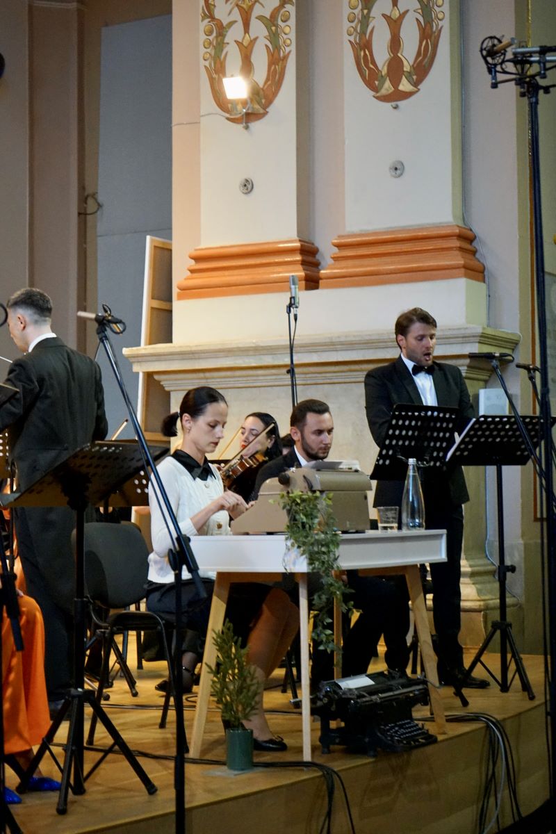 Цей вечір в Органному залі був особливим в усіх сенсах – невідоме для української музики імʼя композитора, сатира над тоталітаризмом, з якого вирвався автор і в який сьогодні хоче повернути Україну сусід зі сходу, надзвичайно красива музика, чудова робота оркестру й фантастичні солісти, а також атмосфера, яку створювали деталі – друкарська машинка на сцені, чайний гриб у банці, мегафон. Але про все по черзі.